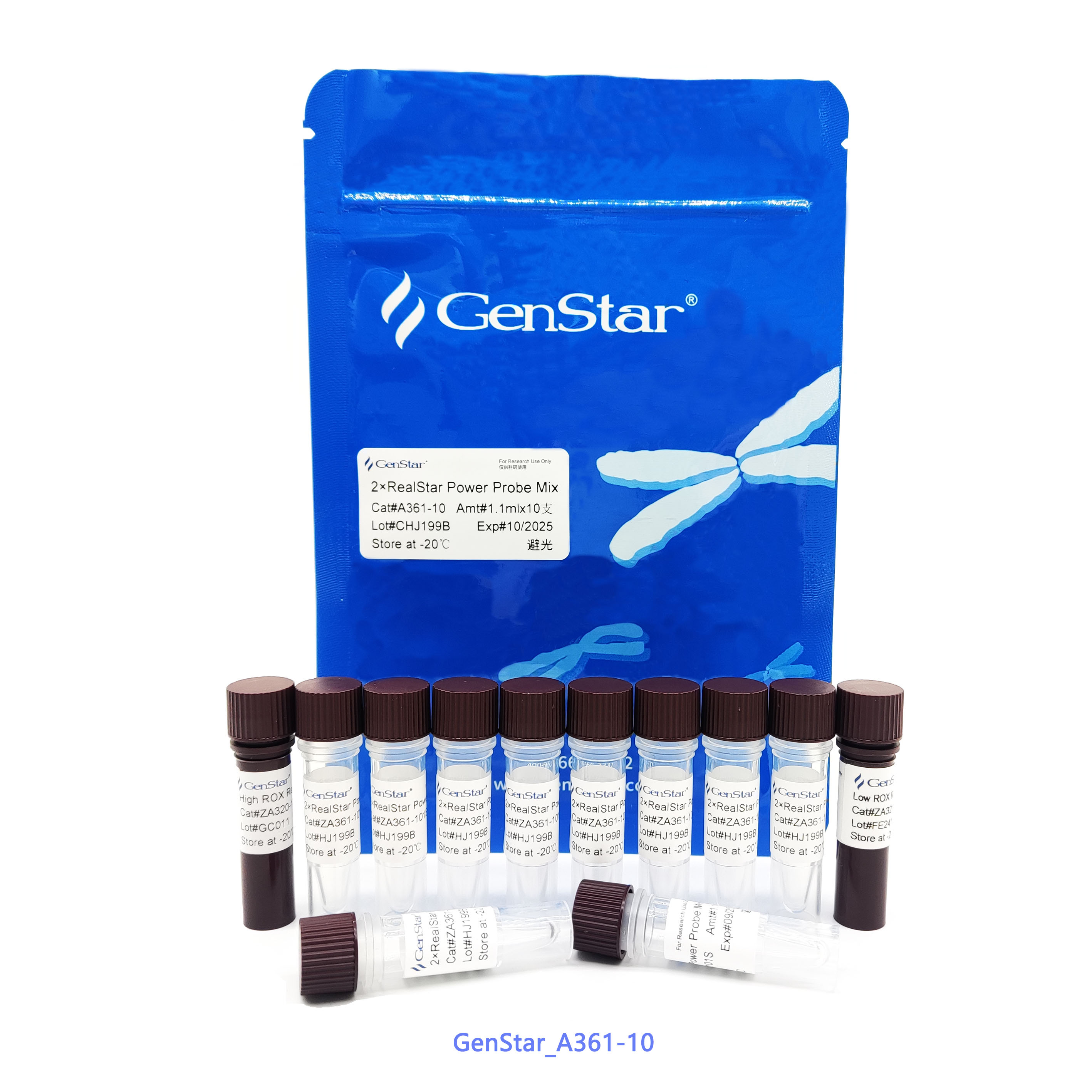本產(chǎn)品是專用于探針法(TaqMan,Molecular Beacon 等)實(shí)時(shí)熒光定量的預(yù)混體系。產(chǎn)品含有優(yōu)化濃度的 GenStar Power HSTaq DNA Polymerase、dNTPs、Mg2+、反應(yīng)緩沖液和穩(wěn)定劑等成分。Power HSTaq DNA Polymerase 在 75℃ 以下沒有活性,從而有效避免在常溫條件下由引物和模板非特異性結(jié)合或引物二聚體而產(chǎn)生的非特異性擴(kuò)增,酶的激活需要 95℃ 孵育 10 min。反應(yīng)體系可在室溫下配制,無需在冰上完成,操作方便。主要用于基因組 DNA 靶序列和 RNA 反轉(zhuǎn)錄后 cDNA 靶序列的檢測(cè),如基因表達(dá)分析、拷貝數(shù)分析、SNP 基因型分析等,適用于不同類型探針法熒光定量 PCR。