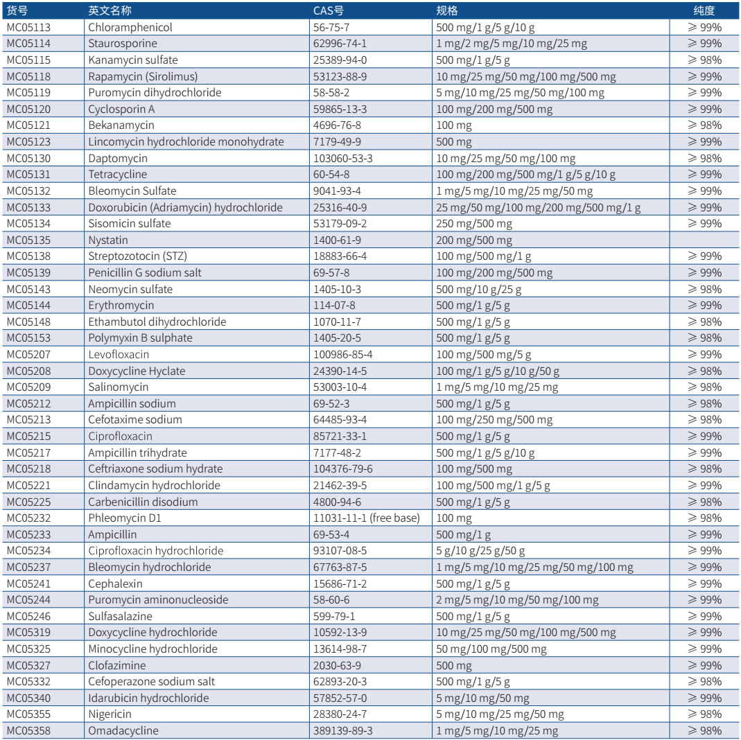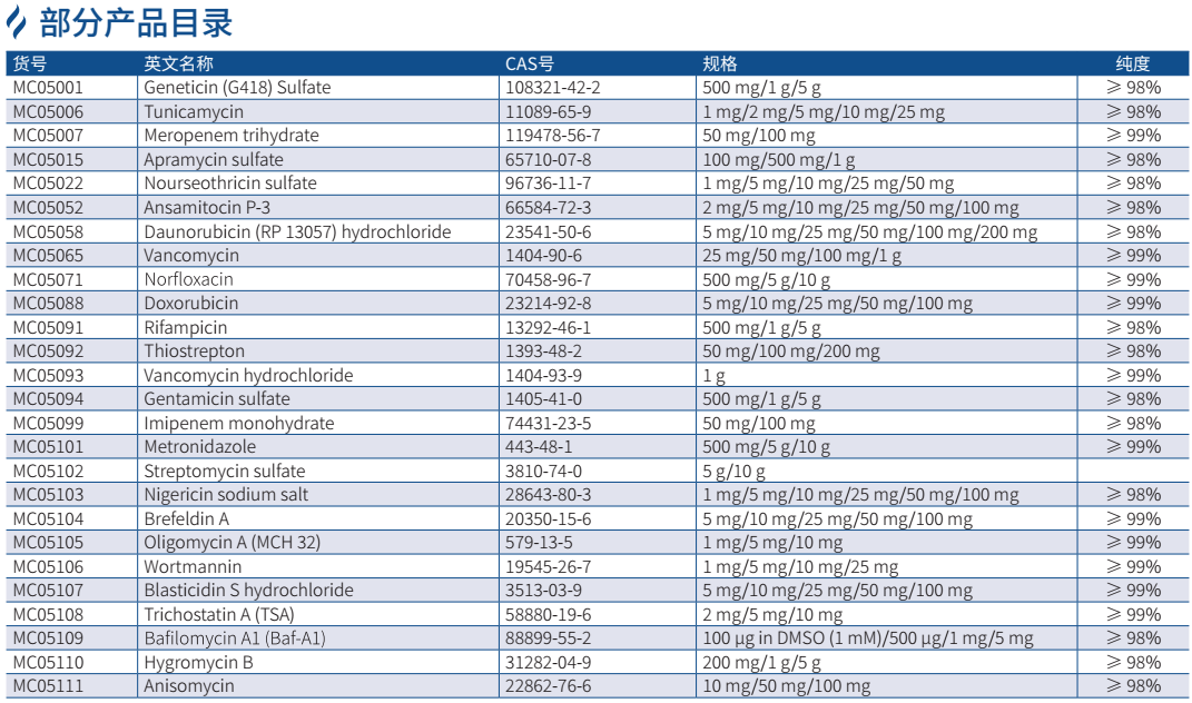 本界面只顯示部分產(chǎn)品信息,若想獲取更多小分子系列產(chǎn)品信息,請(qǐng)聯(lián)系我們銷售或致電技術(shù)支持熱線:400-666-3332