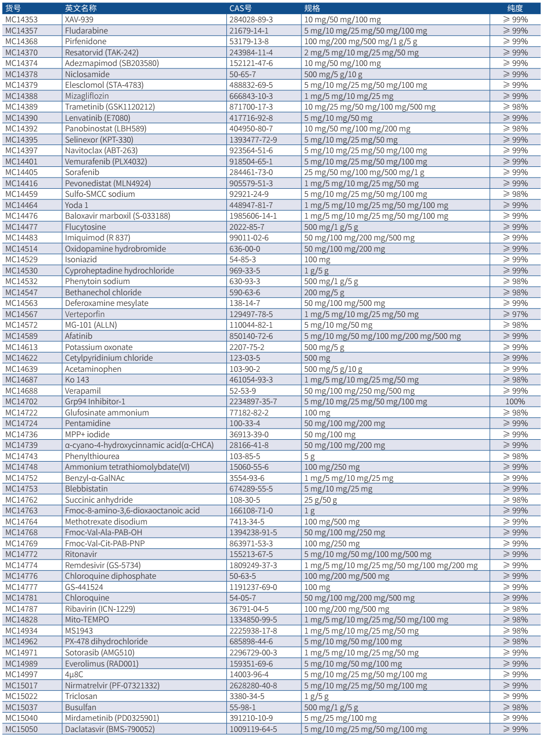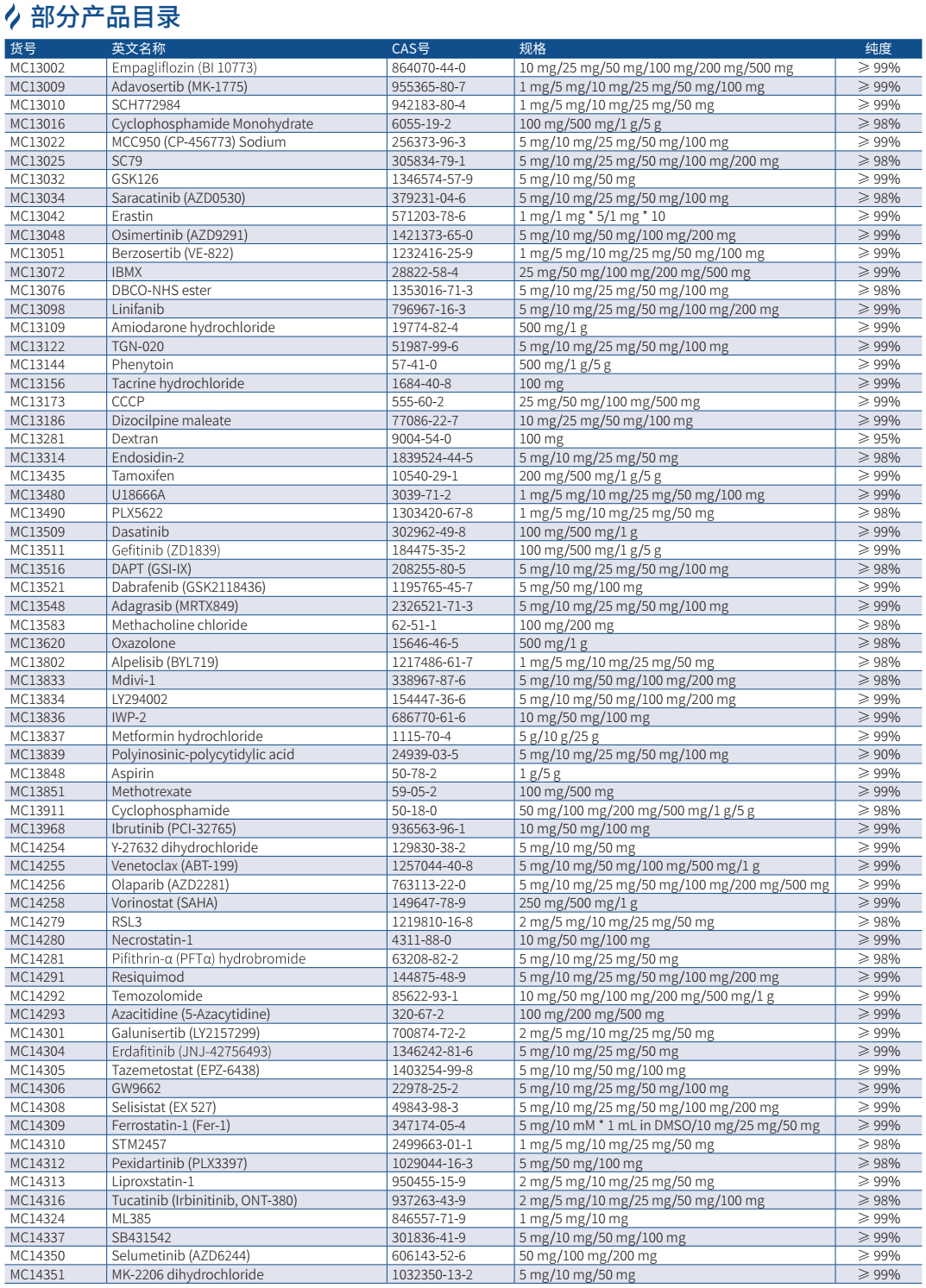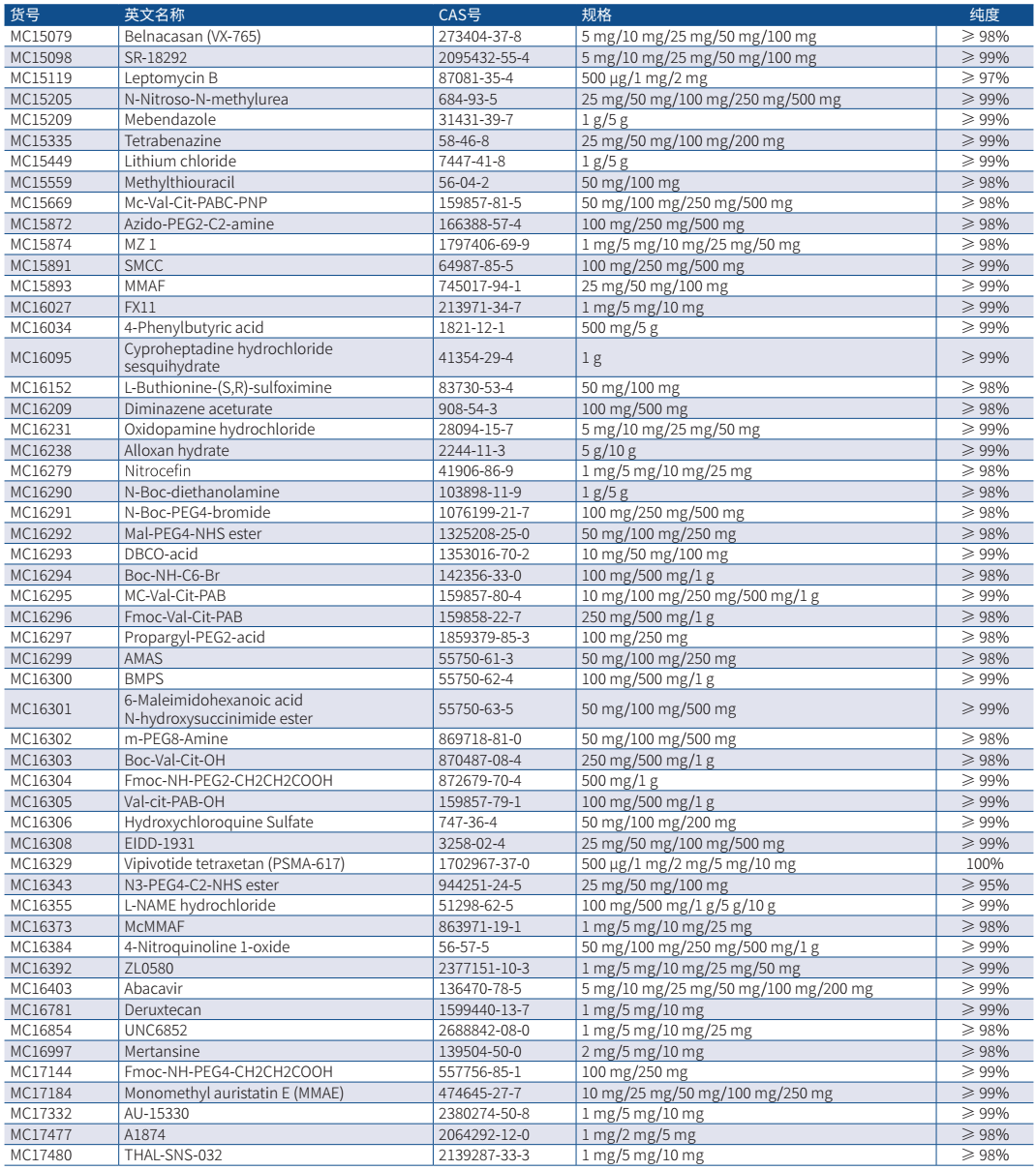 本界面只顯示部分產(chǎn)品信息,若想獲取更多小分子系列產(chǎn)品信息,請(qǐng)聯(lián)系我們銷售或致電技術(shù)支持熱線:400-666-3332