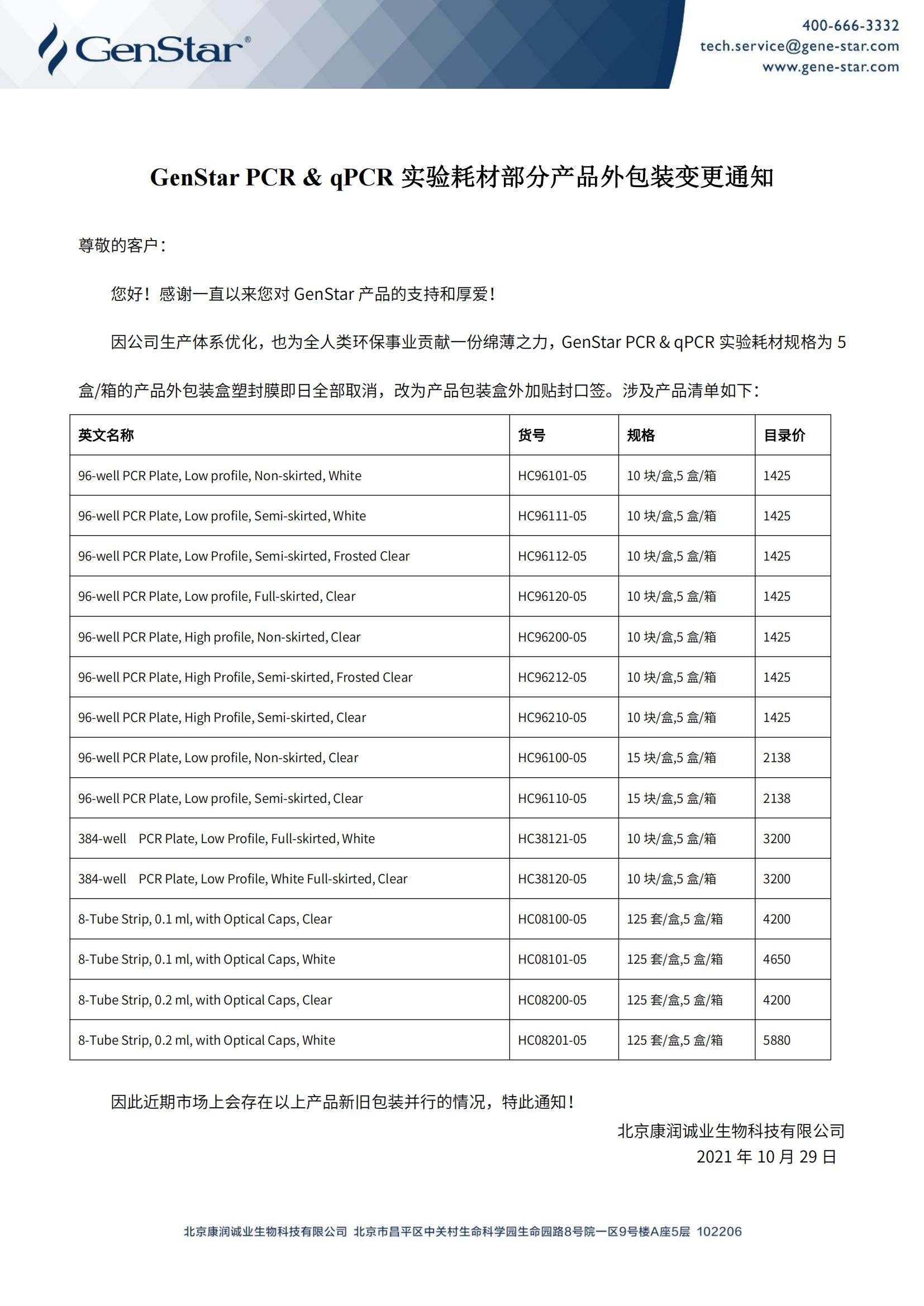 GenStar PCR & qPCR實驗耗材部分產(chǎn)品外包裝變更通知