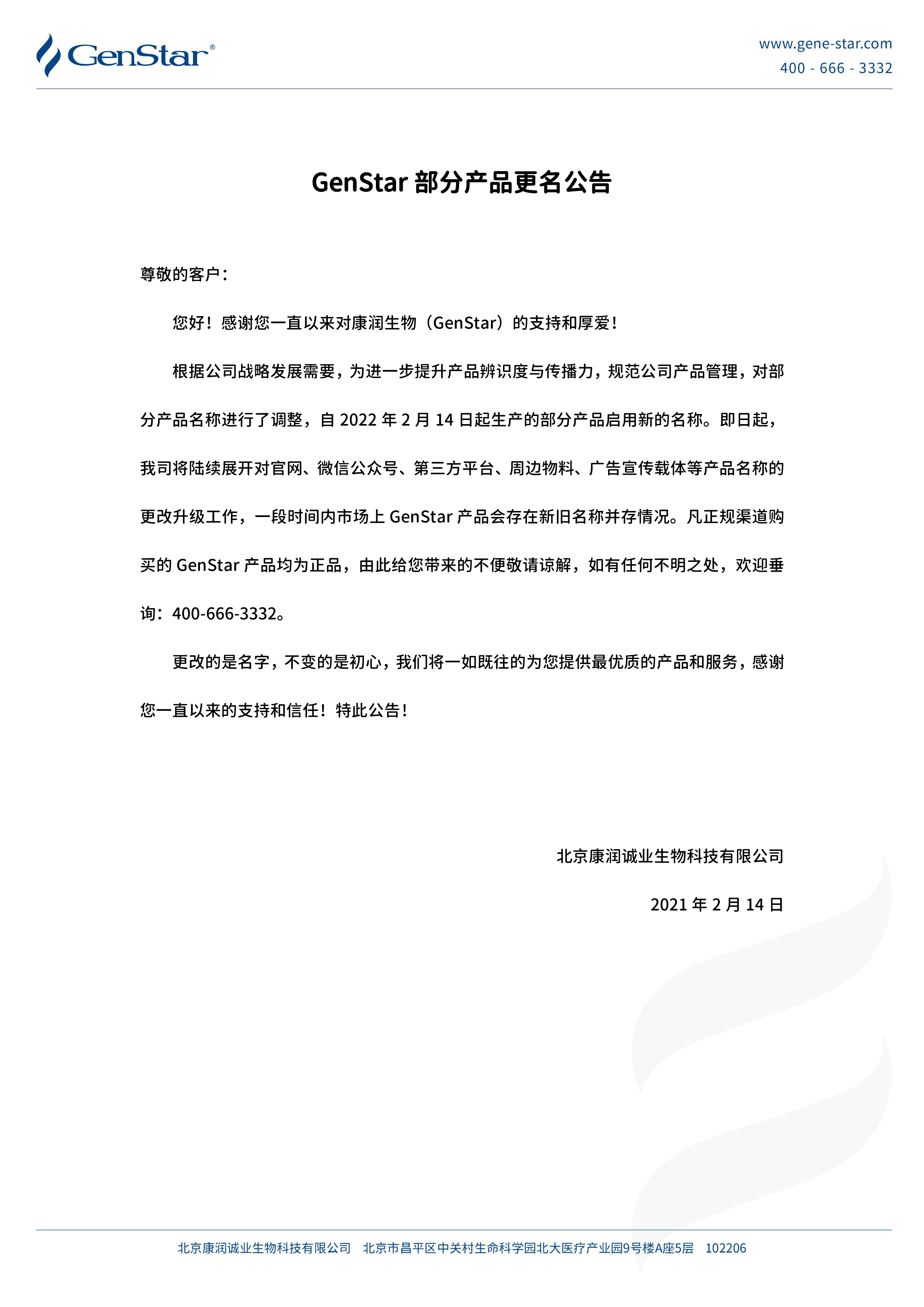 GenStar部分產(chǎn)品更名公告